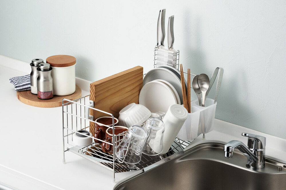 スリムサイズなのでシンクサイドスペースを取らない水切りラックです。